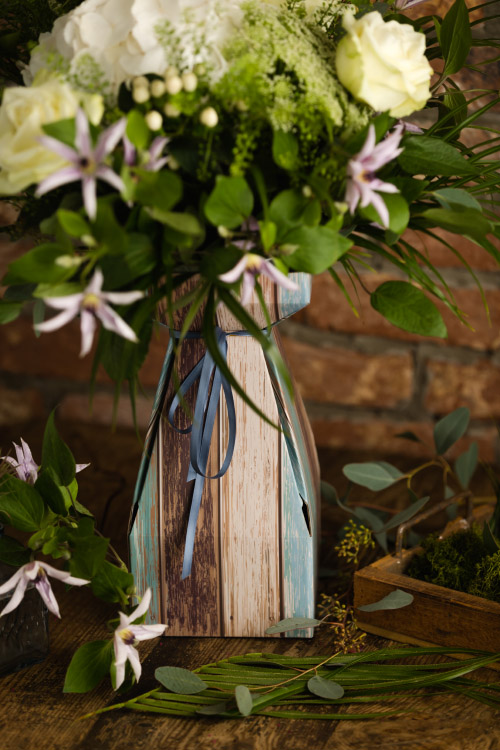 My hand tied bouquets are delivered in a presentation vase incorporating water and flower food, so there is no need to disturb them by transferring them to a different vase.